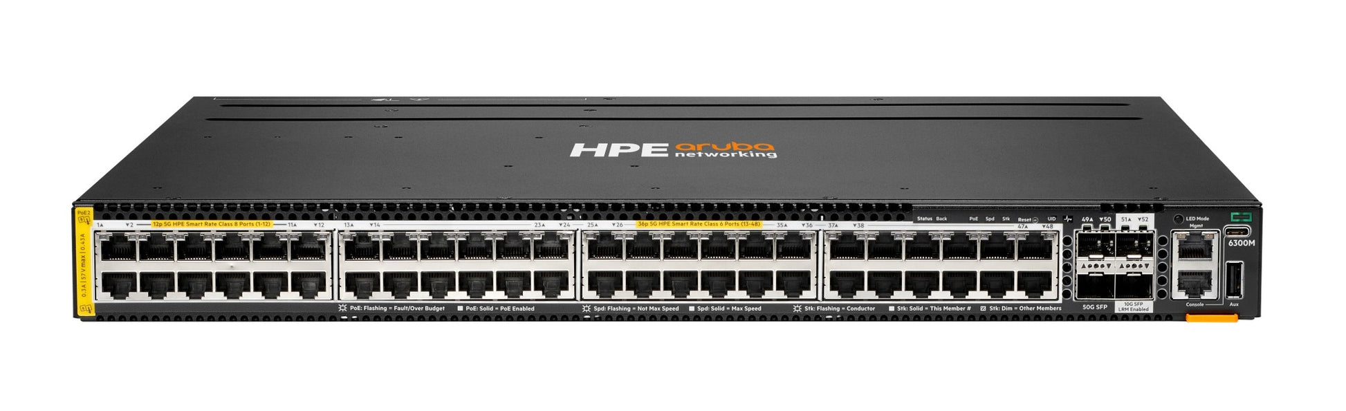 Aruba R8S91A | 48x 1/2.5/5G Smart Rate (12x Class 8 90W + 36x Class 6 60W PoE), 2x 50G SFP56 + 2x 10G SFP+ uplinks | License: AOS-CX base