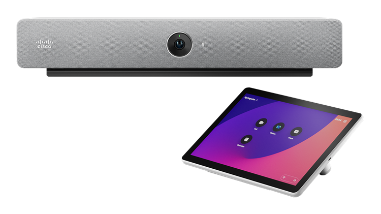 Cisco CS-BAR-MM-K9 | Video bar kit, First Light white, integrated UHD camera/mics/speakers, HDMI display output, Ethernet + Wi‑Fi/Bluetooth, includes table touch controller