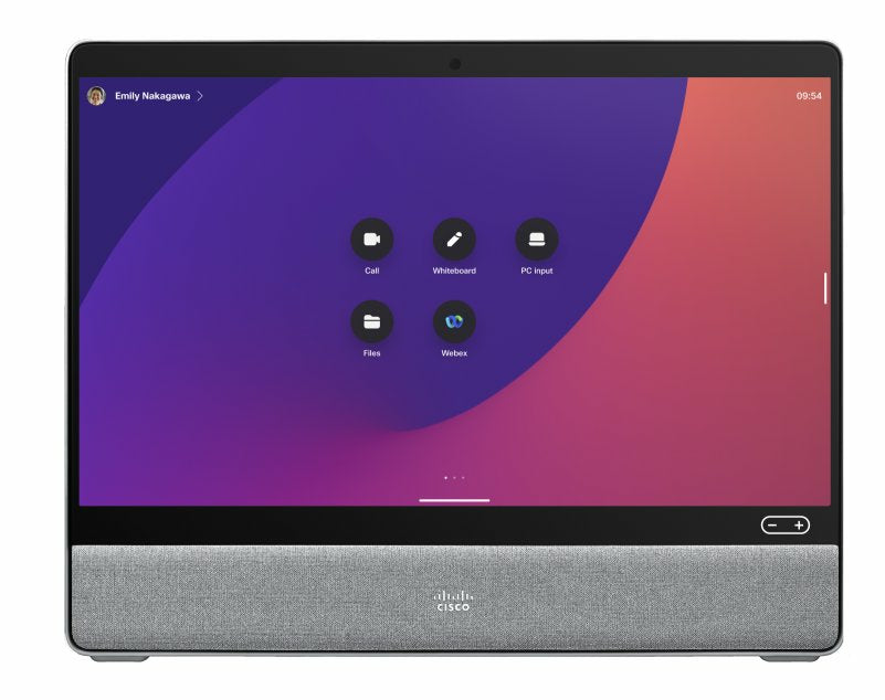 All-in-one desktop video collaboration solution integrating a touch display, intelligent 4K camera, beamforming microphones, and tuned speakers. This No Radio build excludes Wi‑Fi and Bluetooth for wired-only deployments over Ethernet.