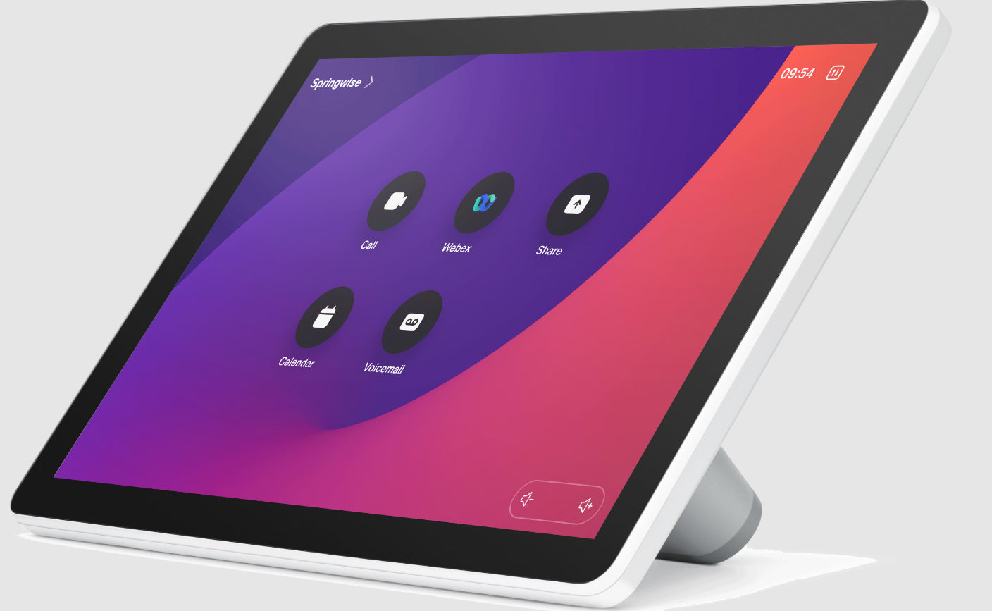 10-inch table-stand touch controller for meeting room device control and scheduling, provided as a spare unit in First Light (white). Ideal for replacements or adding nodes to existing rooms while maintaining a consistent light finish.