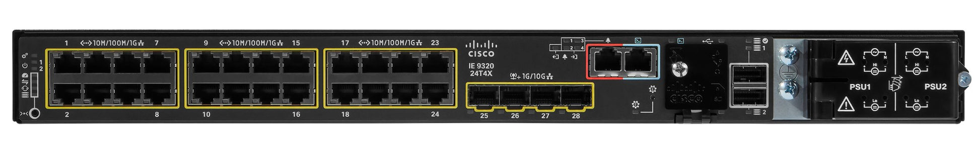 Cisco IE-9320-24T4X-E | 24x 1G RJ45 downlinks, non-PoE; 4x 10G SFP+ uplinks; Network Essentials license