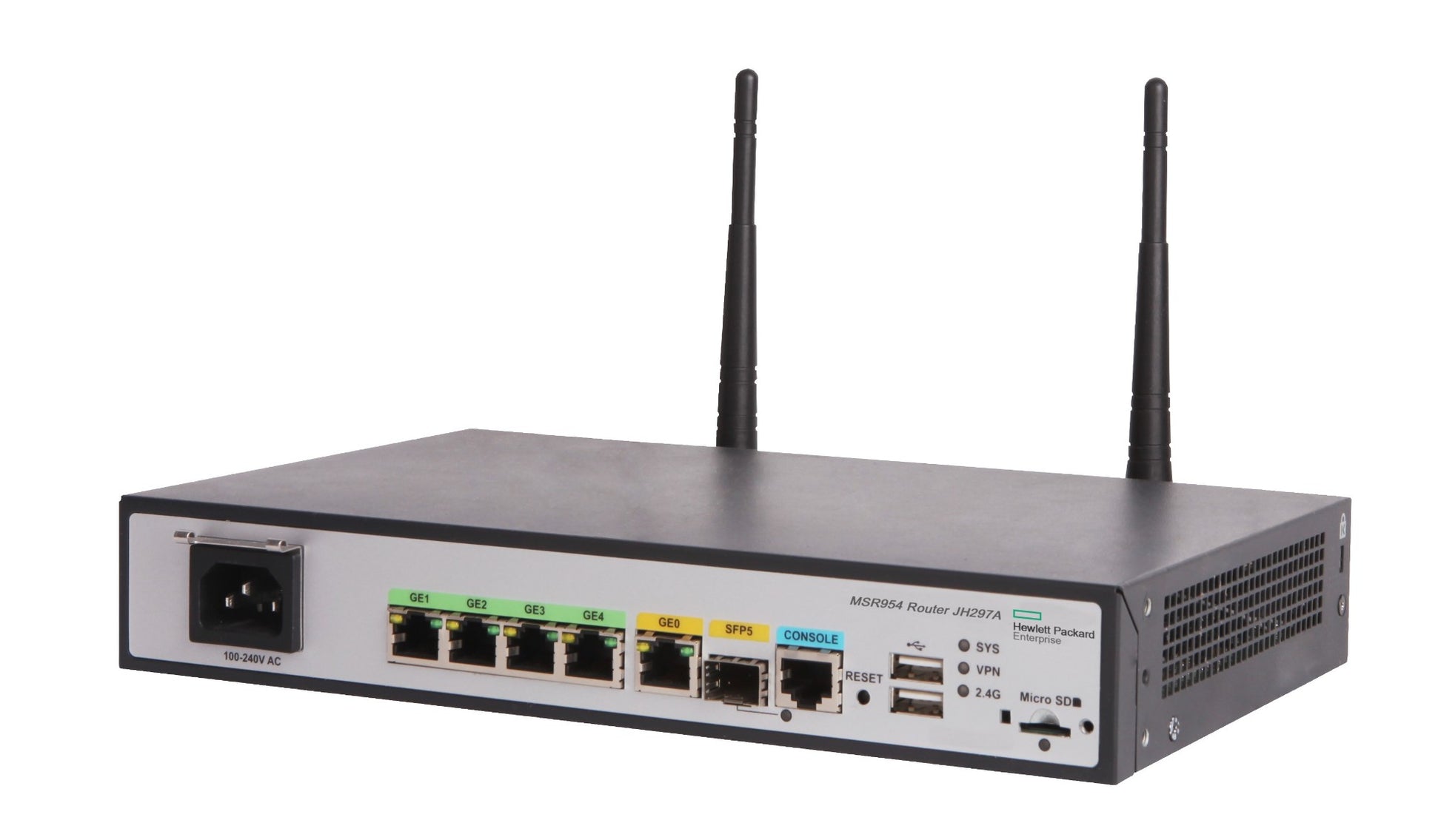 HPE JH297A | 1x 1GbE SFP, 2x GbE WAN, 4x GbE LAN, 802.11n Wi‑Fi (2.4 GHz), Comware v7, IPsec VPN, SD‑WAN ready, no integrated LTE