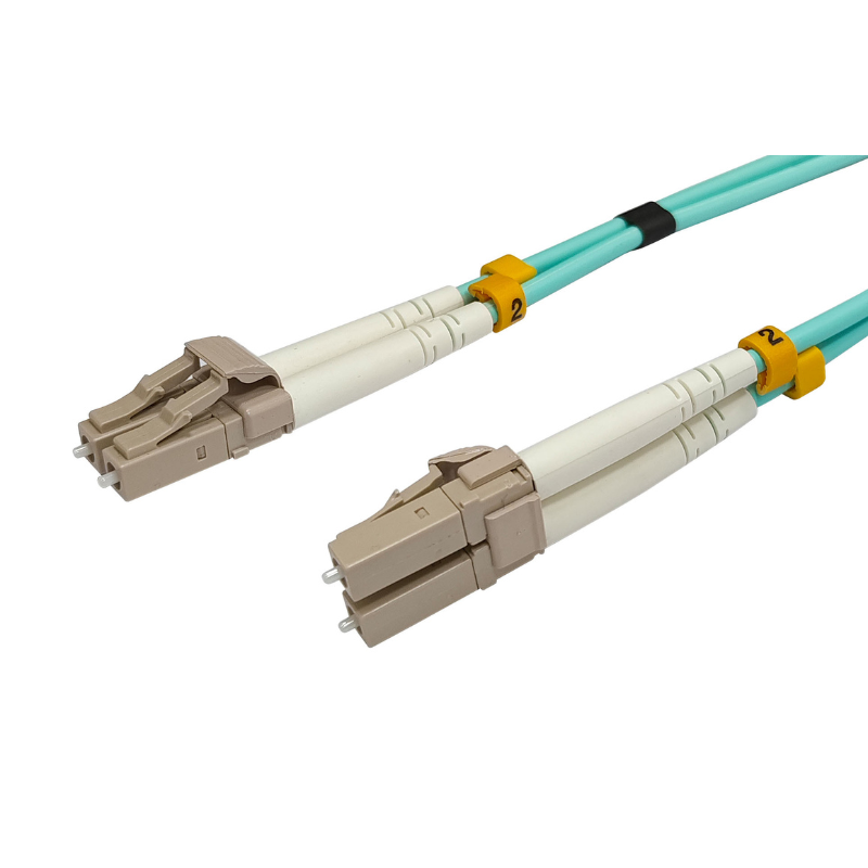 OM4 Multimode Fibre Optic Cable | Duplex LC to LC | LSZH Aqua | 0.5 to 10 Meter