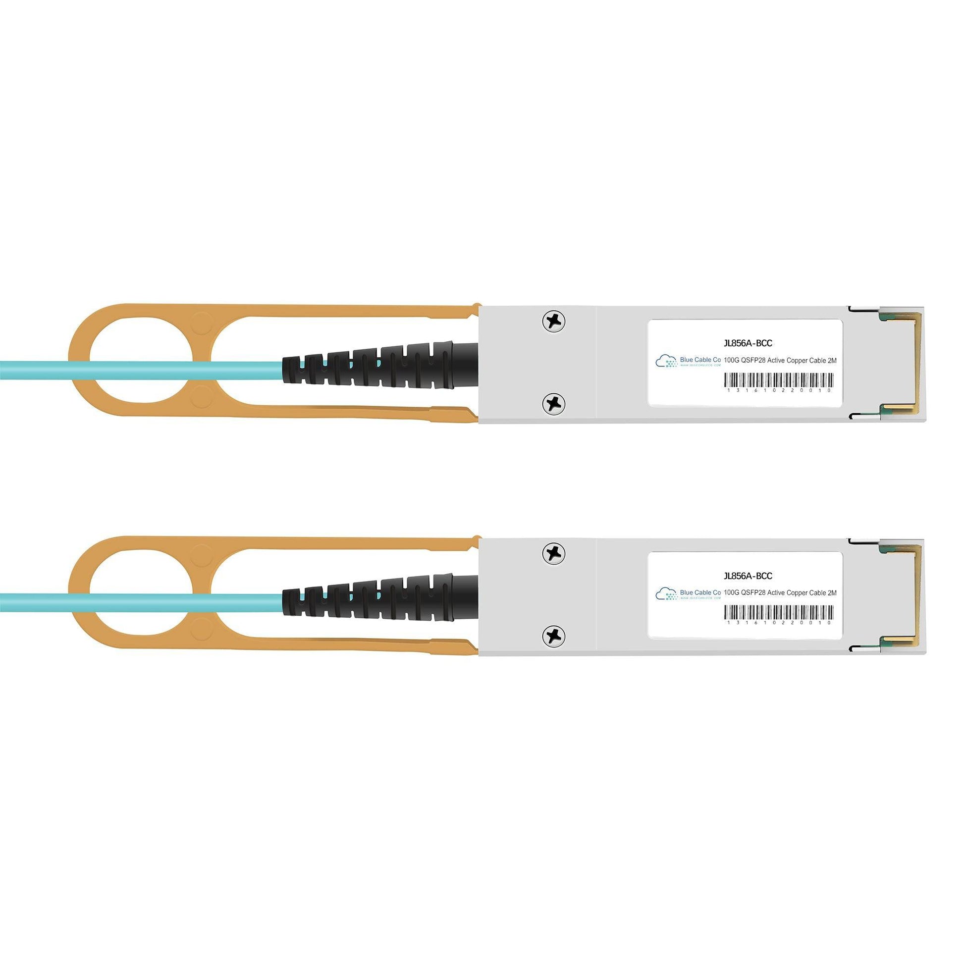 The Blue Cable Co® 100GBASE-AOC-BCC is an Aruba-compatible QSFP to QSFP active optical cable, featuring a multi-mode fiber design with a 30-meter max distance.
